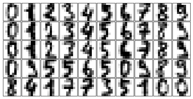 fig, ax = plt.subplots(5, 10, figsize=(8, 4),