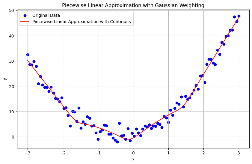 plt.title('Piecewise Linear Approximation with Gaussian Weighting')
