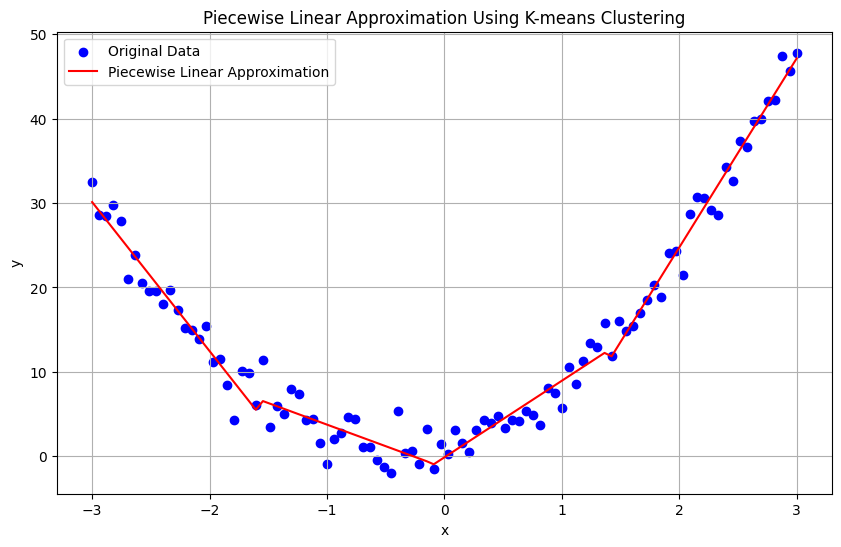 For each cluster \(j\), fit a linear model \(L_j(x) = a_j x + b_j\) using OLS.