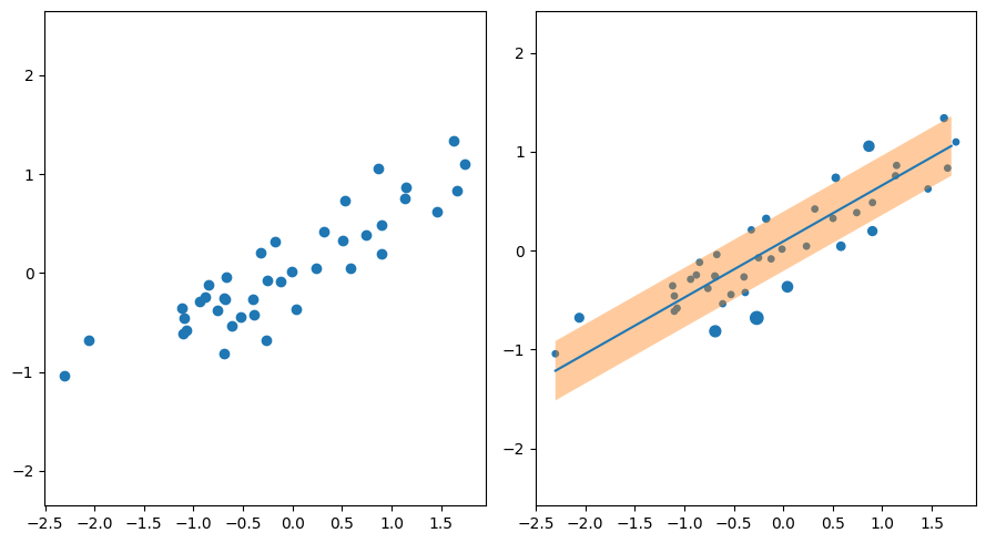 axs[1].fill_between(x, y-eps, y+eps, alpha=0.4)